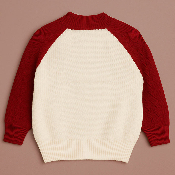 1. Design: This cute winter sweater is perfect for little ones who love fun and festive dressing. The cosy cream pullover features a super cute 3D dachshund dog, adding charm and playful detail. The bright red sleeves with knitted patterning enhance the festive feel, making your child look extra cute and cheerful during the winter season.