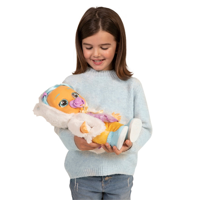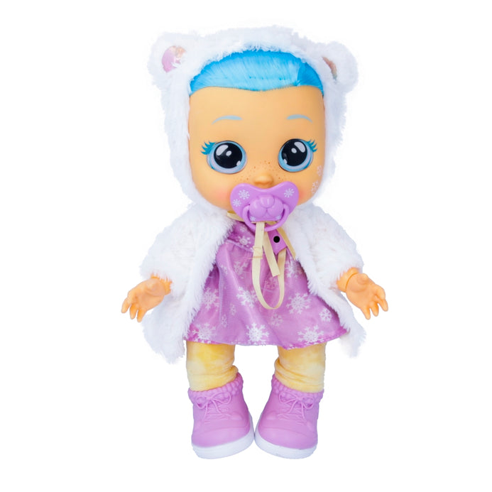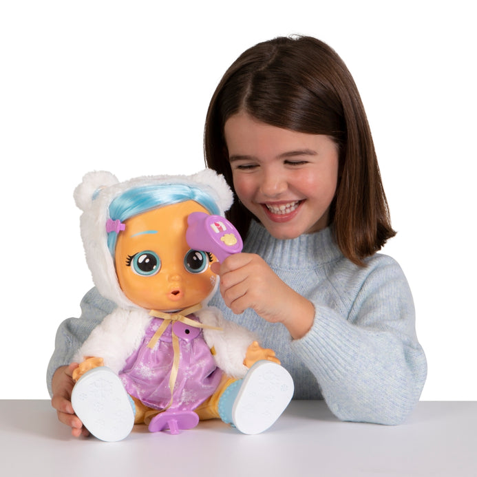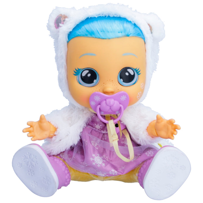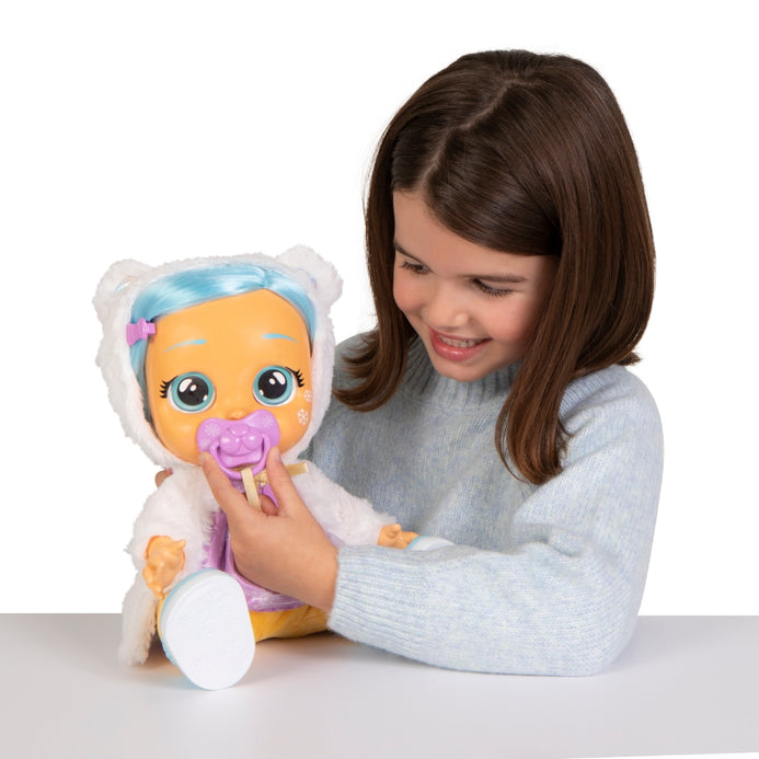 - When you remove the pacifier, Kristal will start crying real tears and makes realistic baby noises.