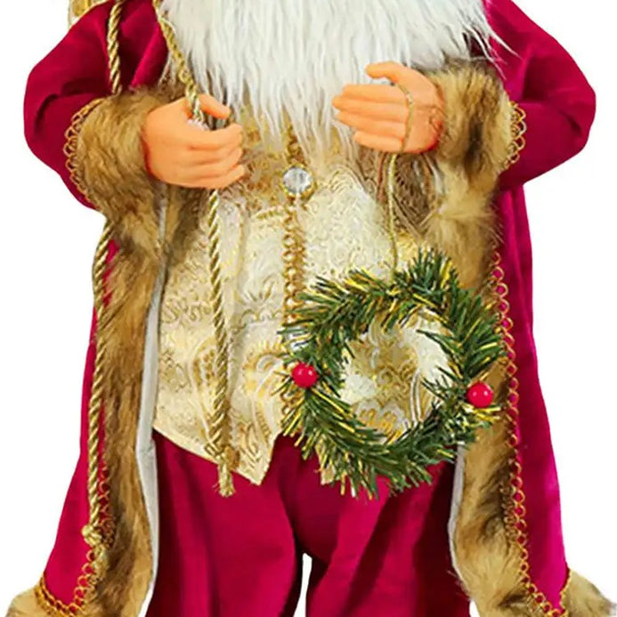 - Exclusive Design: This Exquisite and overly attractive Santa in Rich Gold and Maroon attire with heavy Furry Look holding and adorning the most cutest christmas elements is an eye catcher when placed on any table or your favourite corner of your house to accentuate your christmas decor.
