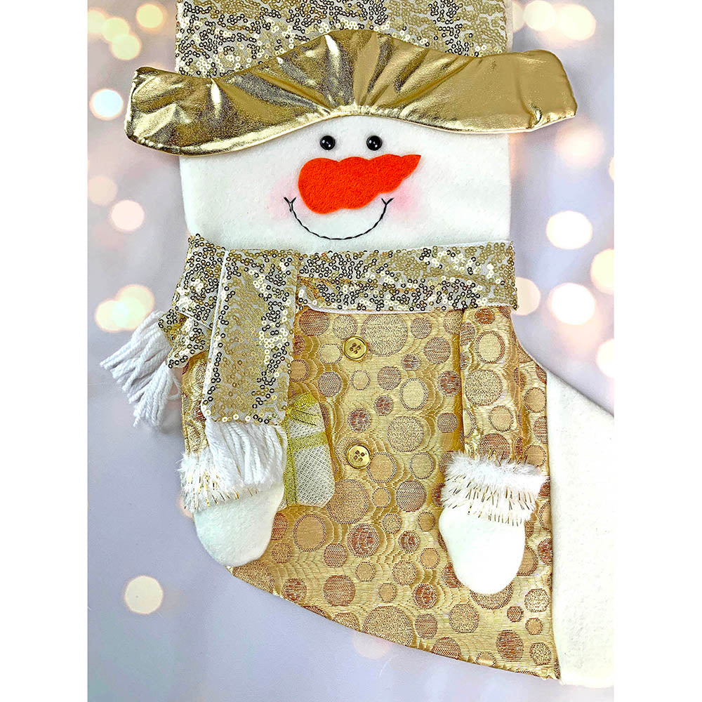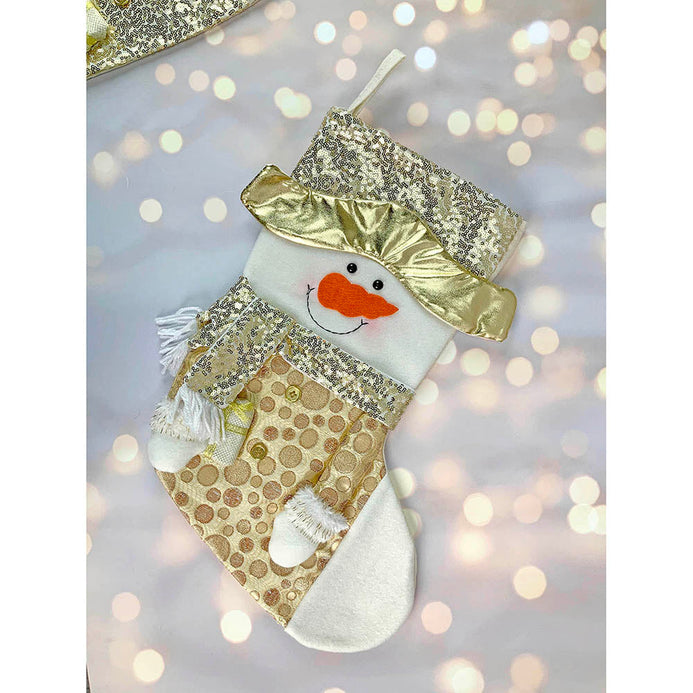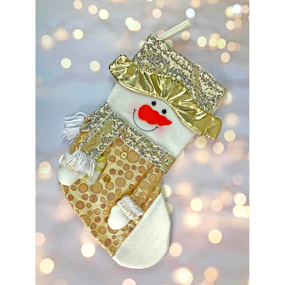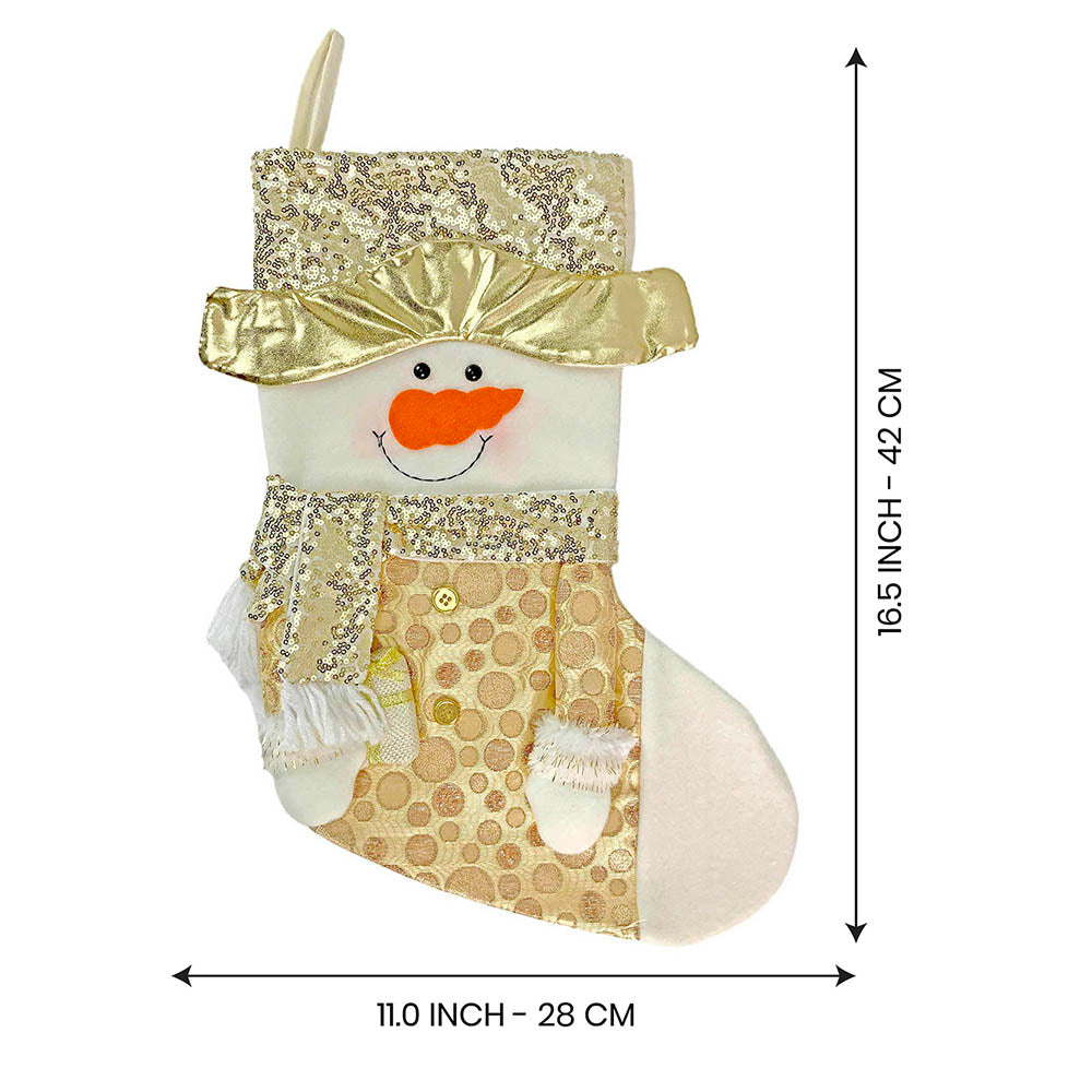 2. Unique Design: This beautifully crafted Gold shimmery themed Snowman styled Stocking is an absolute head turner and such a stunner . The unique gold panels and shine adds such a glittering holiday cheer to the festive christmas mood.Its an absolute buy if u are someone who likes Christmas and all the Shiny Glitter.