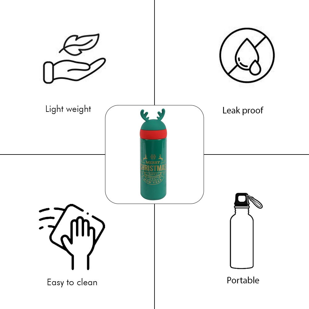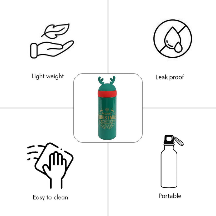 - Design: A perfectly curated XMAS theme bottle for all those christmas lovers out there. A cute handy Christmas Antlers theme Water Bottle for the go.