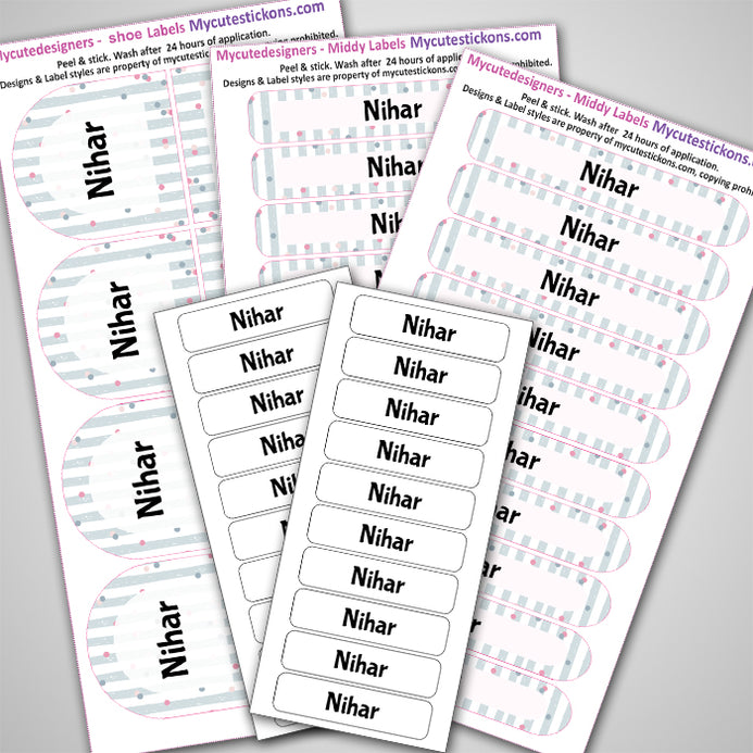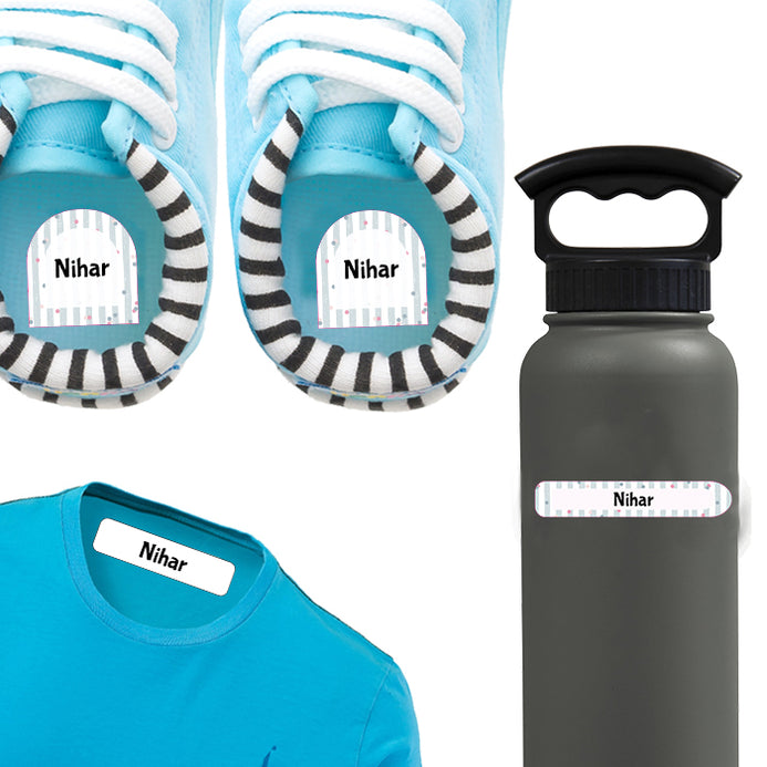 It’s a small pack of assorted labels for your few days of camping baggage needs, The Iron On Clothing Labels, Shoe Labels and minnies are all a part of this pack. It's great for starters too, who wish to try our labels. The pack contains 15 iron-on, 2 pairs of shoe labels, 20 Medium labels.