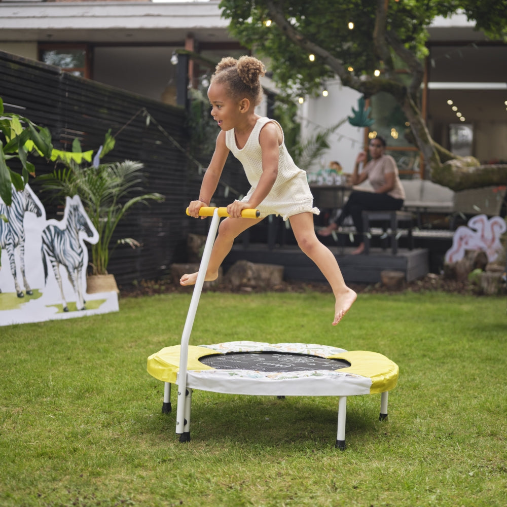 • The soft-grip handle will aid stability and balance as your little one jump's.