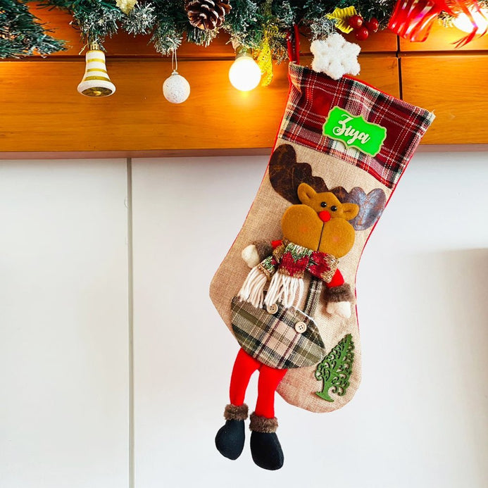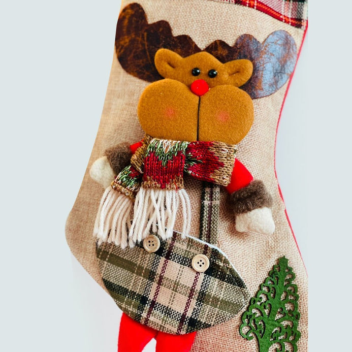 - Christmas Socks Decoration- With a hanging loop, these large stockings can be hung on any favourite corner/ door/ mantke or the christmas tree. Available in 3 design variants - Rudolf, Santa and Snowman