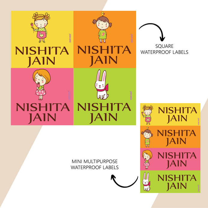 For all your labelling needs from bottles, tiffins to everything big and small we have you covered! The new combo set comes with two sticker sizes, that will have all your kids items labeled and ready for school! And the added bonus they are all WATERPROOF!