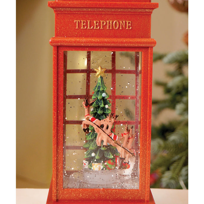 1. Enchanting Musical Lit Decor: This enchanting intricately designed london telephone booth styled Musical Lit Lamp with glitter water is such a delight when used as a table Decor truly depicting the magical Christmas festive charm.