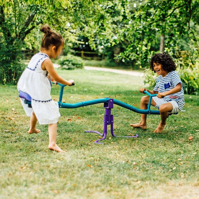 The Plum® Rotating See Saw is an exciting new take on the traditional seesaw! Not only does it move up and down, but also spins 360° for even more fun!
