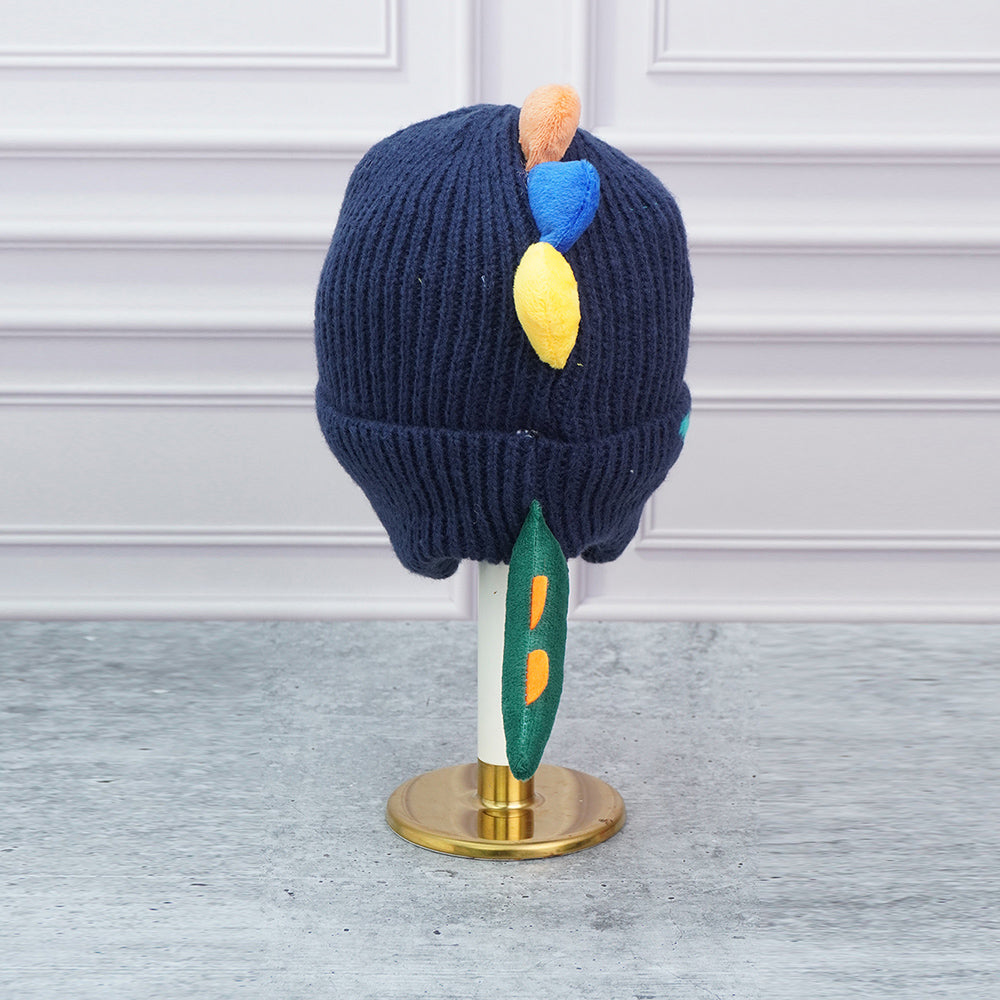 Navy 3D Head And Tail Knitten Woolen Winter Cap & Beanie | 3-10 Years