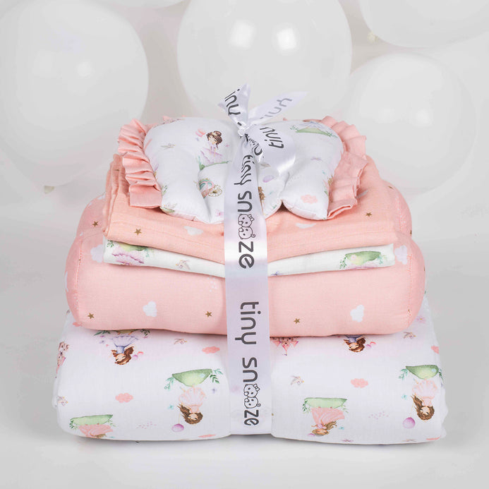 This thoughtfully curated gift set contains all the soft organic must-haves for your lovely newborn.