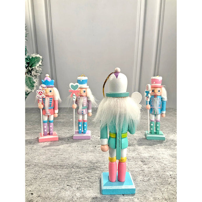 1. Set of 4 Nutcrackers: Celebrate the holiday season with this charming set of 4 candy-themed wooden nutcrackers. Each nutcracker is hand-painted in soft pastel colors and holds a festive candy cane or lollipop, adding a sweet and whimsical touch to your Christmas Decor.