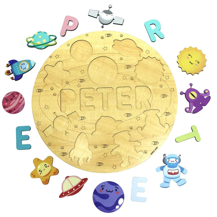 Discover the fun of learning with our wooden name puzzles! Each colourful letter is like a piece of a puzzle waiting to be put together. Your child can learn to spell their name while having fun. It's a hands-on way to engage young minds and improve their fine motor skills.