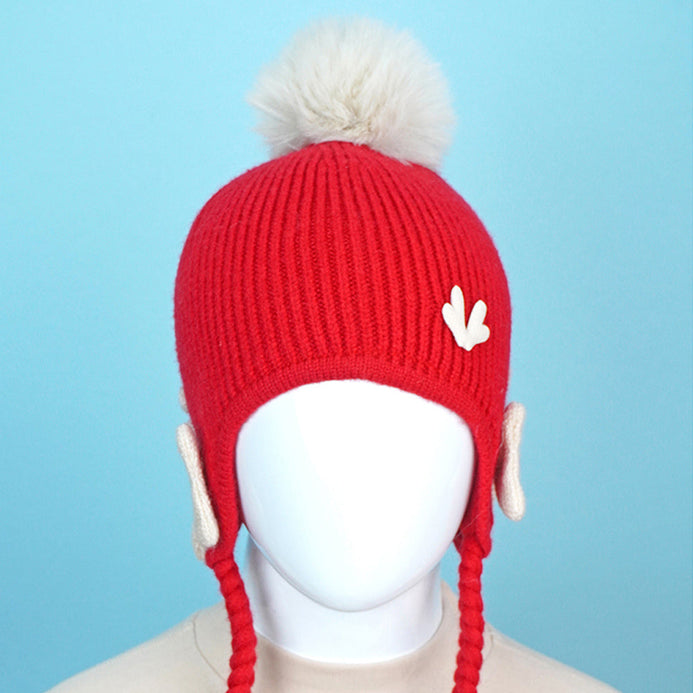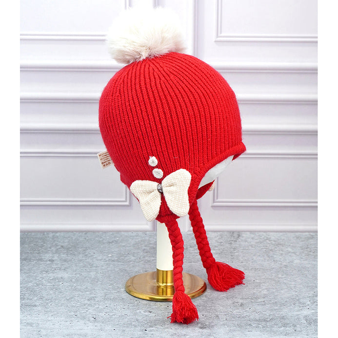 Red Butterfly Knitted Soft Woolen Winter Cap With Tie Up | 6-18 Months