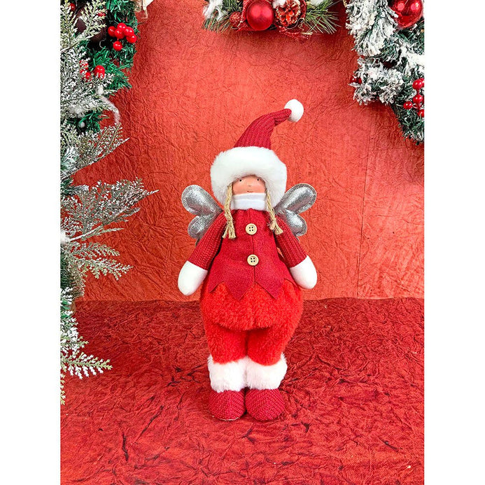 1. Exquisite Design: If you are a christmas enthusiast who is looking at the most unique and attractive Decor to deck up your halls, this christmas fairy angel with shiny Glitter silver wings is a total show stopper. This chubby angel cutely dressed up in winter clothing which is a beautiful collared wooden buttoned red shirt with fluffy furry pants adorned with beautiful glittery angel wings , 2 neatly tied up hair plates along with a fluffed up santa hat which is like the icing to the complete beauty.