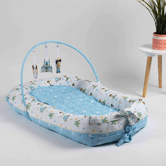 Our organic baby nests are the most comfortable, lightweight, multi-purpose and one of our most adorable products! They come with cushioning on all sides so your baby is protected at all times. It is the best option while co-sleeping with the baby as the sides of the baby nest protect them from rolling over. It comes with an optional mosquito net to protect your baby while sleeping.