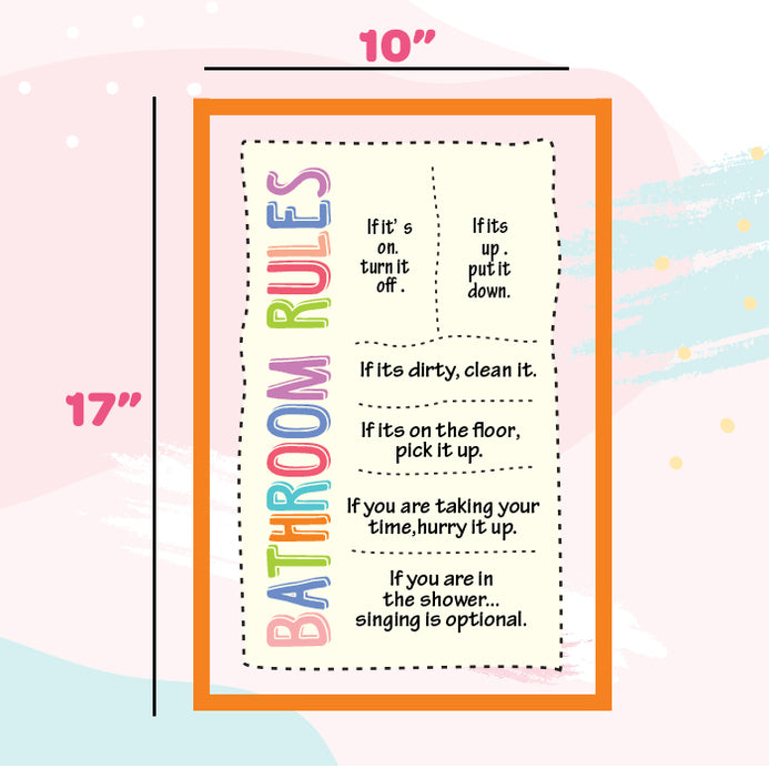 It’s one of the best ways to train your children in bathroom etiquettes and manners. 10 by 17 inch size, waterproof Vinyl print with a wooden orange or black frame.