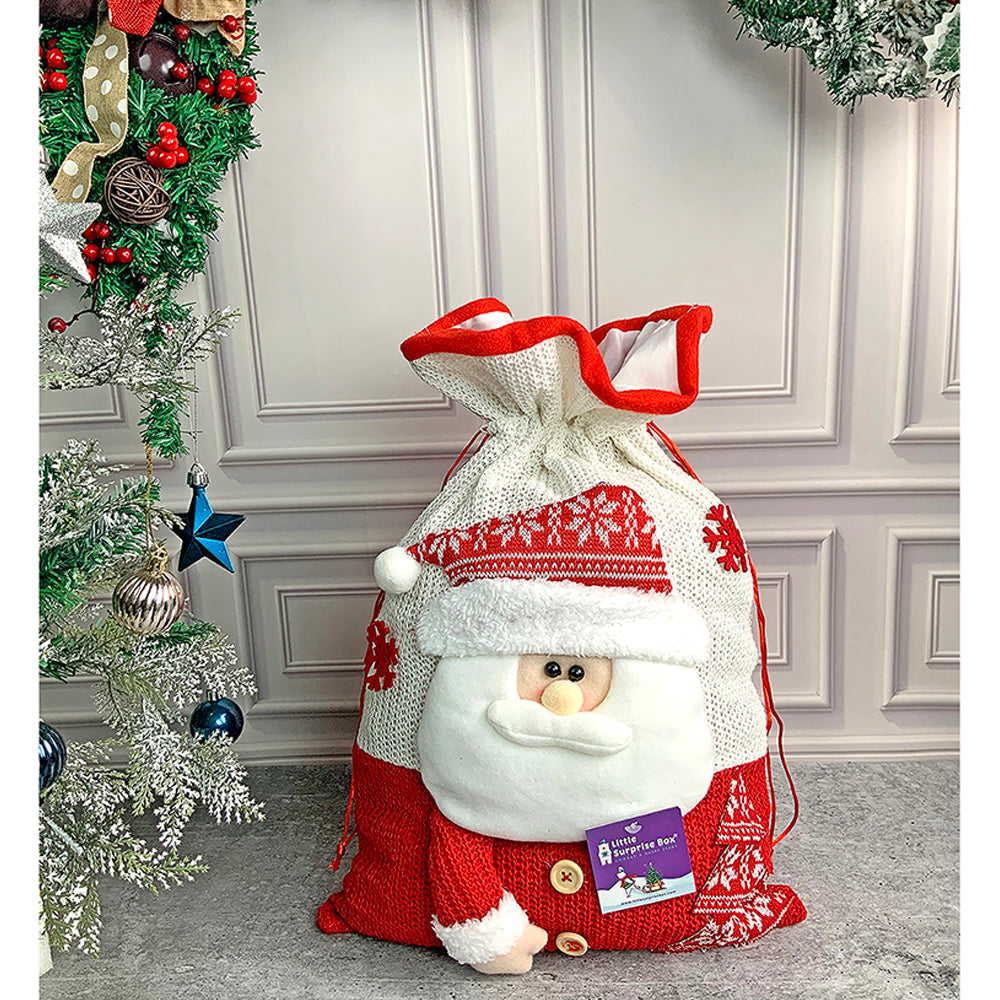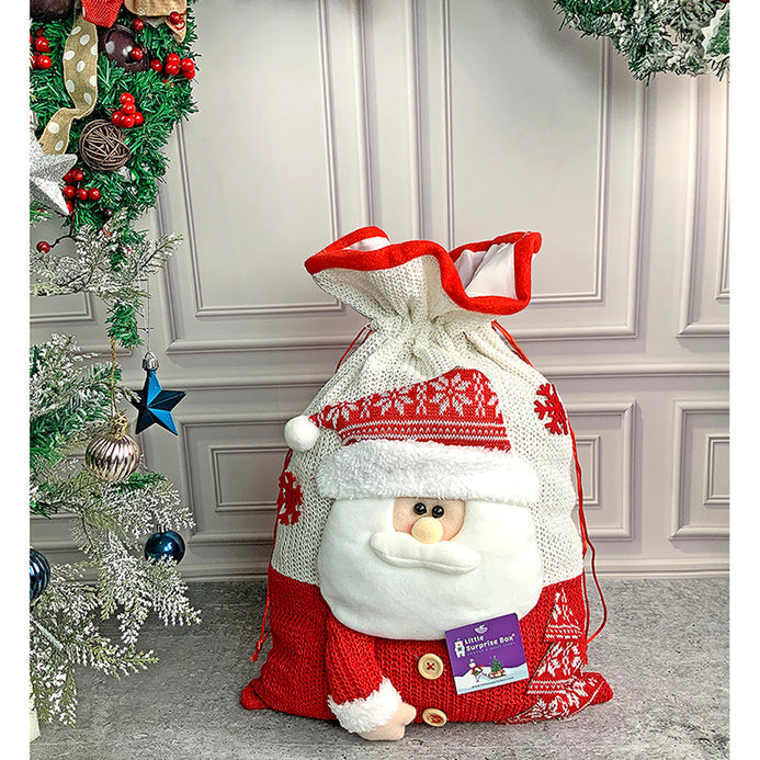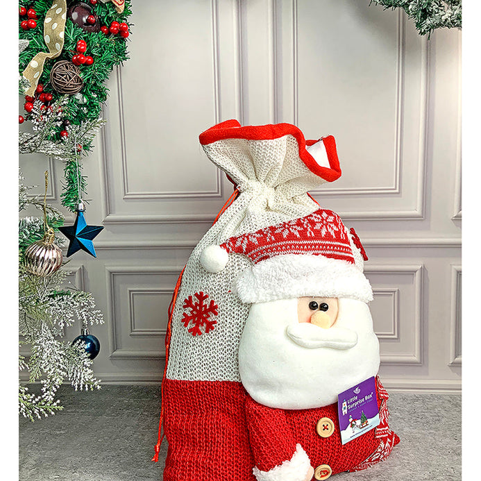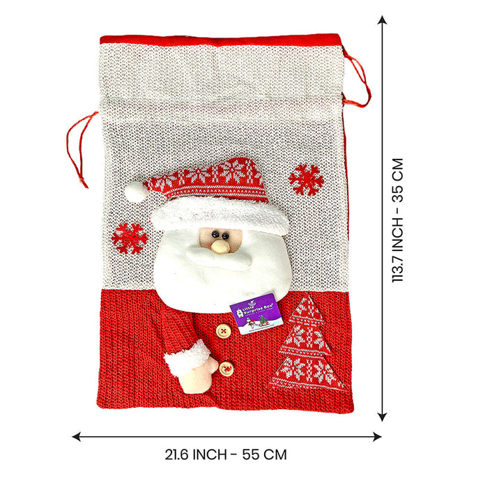 2. Unique Design: Make your holiday gifting extra special with this adorable christmas sack. This beautifully crafted luxurious knitted fabric 3d Santa applique sack is an absolute stunner. The bright and vivid christmassy colors add all the holiday cheer to the festive christmas mood. The minute details of the smiling santa wearing a red winter hat with charming snowflake and button details add to a perfectly cozy and festive look.