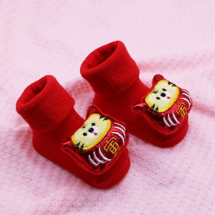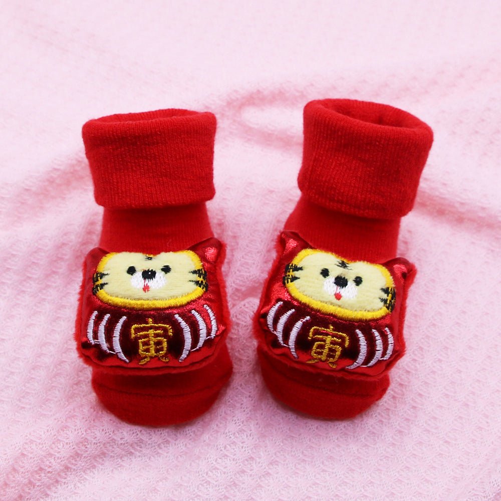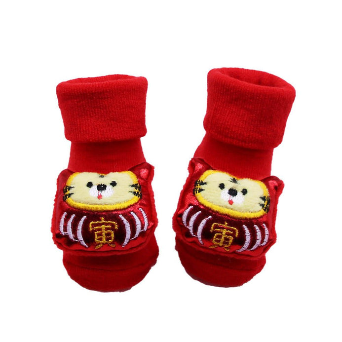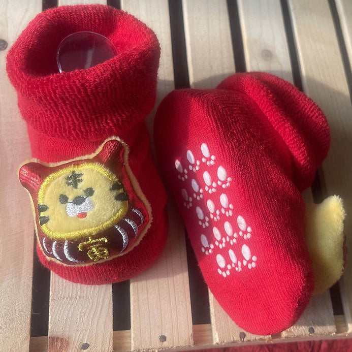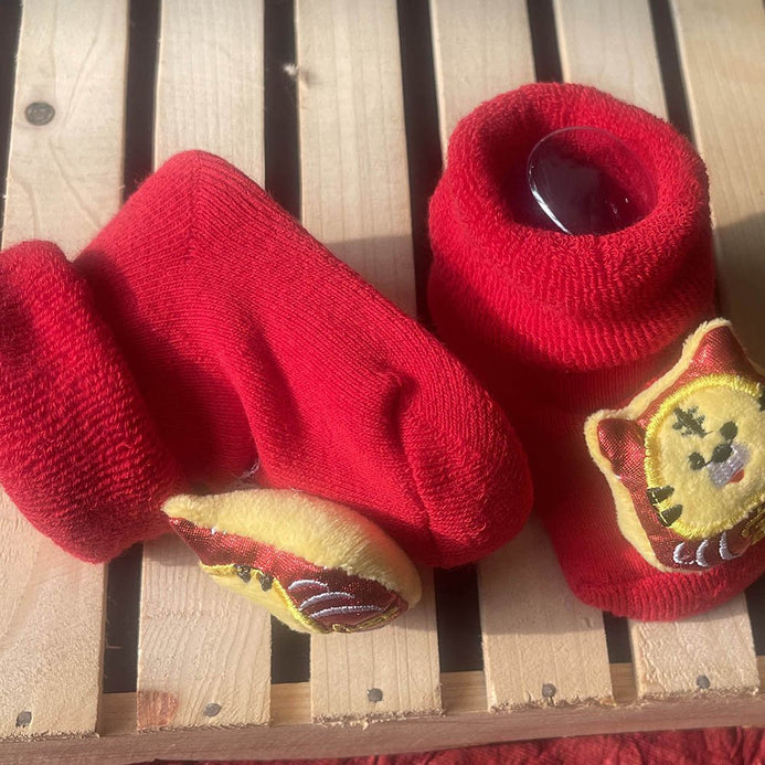 Shimmer Red Lucky Chinese New Year Cat Christmas Themed Booties | 0-12 Months