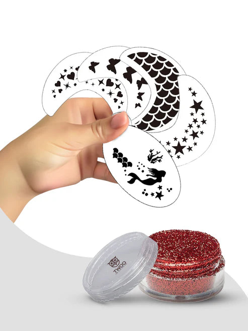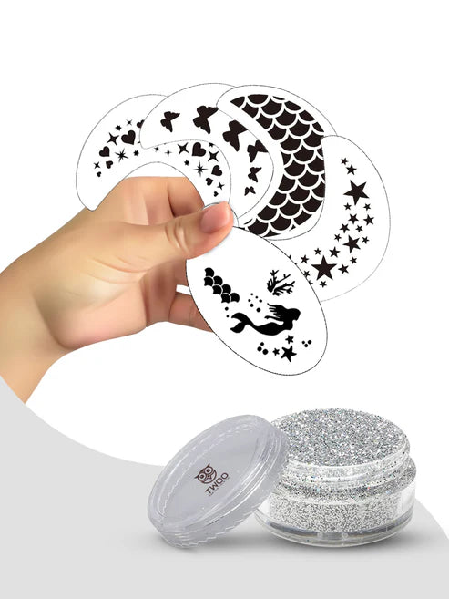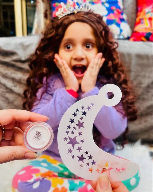 Shimmer & Stencils – Fun, Safe & Sparkly! Let your little one shine with our multi-use, kid-friendly shimmer & stencil set! Perfect for creating temporary tattoos, playful makeup looks, and sparkling designs, this set is a must-have for every little artist.