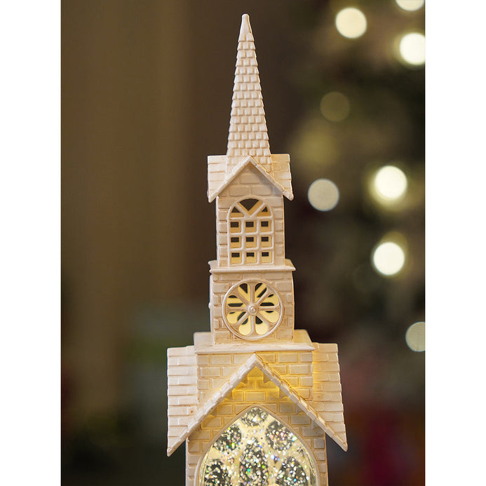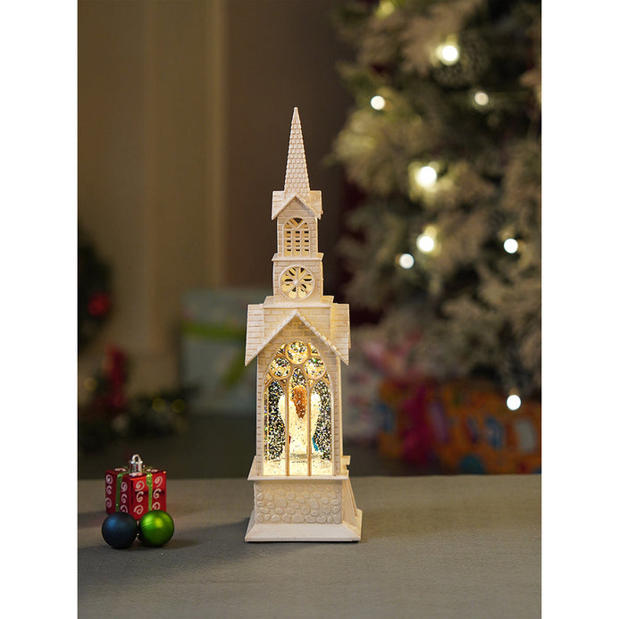 1. Enchanting Musical Lit Décor: This exquisite Ivory Cathedral–style Musical Lit Décor captures the divine serenity of the Christmas season. Designed in an elegant ivory finish with a tall steeple and intricate cathedral windows, it radiates timeless charm and grace, making it a stunning centrepiece for your festive collection.