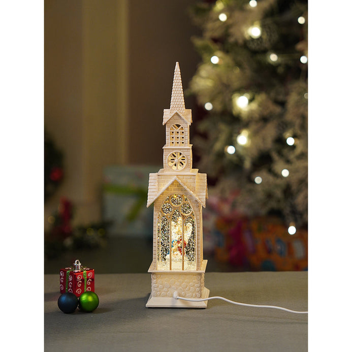 3. Glowing Illumination: When illuminated, the church softly glows through its detailed window cutouts as glitter swirls gracefully with the moving water inside, creating a mesmerizing celestial sparkle that fills your home with the warmth and spirit of Christmas.