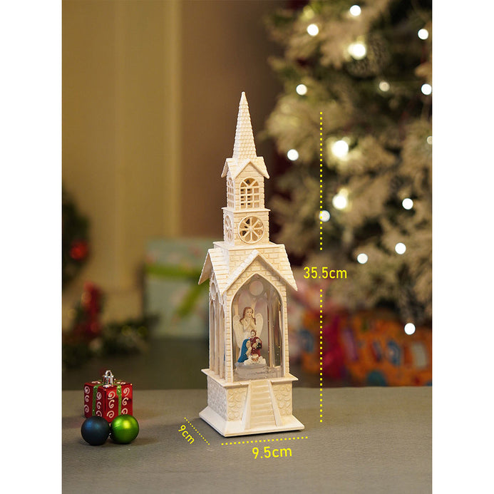 5. Elegant Ivory Cathedral Design: Crafted with stone-texture detailing, tall spire architecture, and Gothic-inspired arched windows, this décor piece embodies both spirituality and festive sophistication.