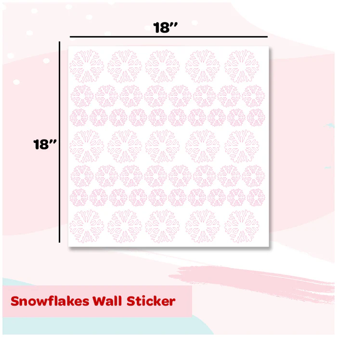 Size of the wall sticker: Each individual piece is a three-cut sticker that comes in one sheet in the approximate size of 18" x 18". The approximate size of all individual pieces is - big snowflakes: 3", medium snowflakes: 2.5", small snowflakes: 1.6"