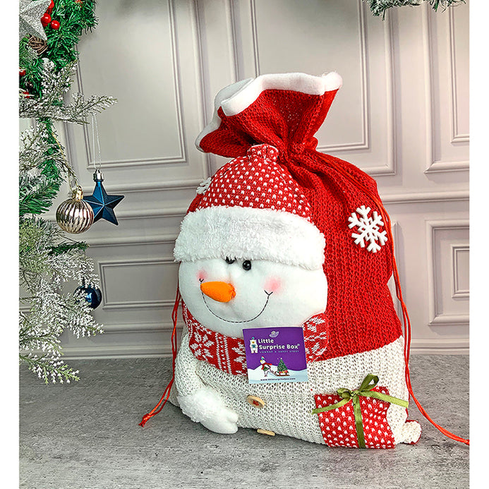 2. Unique Design: Make your holiday gifting extra special with this adorable christmas sack. This beautifully crafted luxurious knitted fabric 3d Snowman applique sack is an absolute stunner. The bright and vivid christmassy colors add all the holiday cheer to the festive christmas mood. The minute details of the smiling snowman wearing a red winter hat and scarf, with charming snowflake and button details add to a perfectly cozy and festive look.
