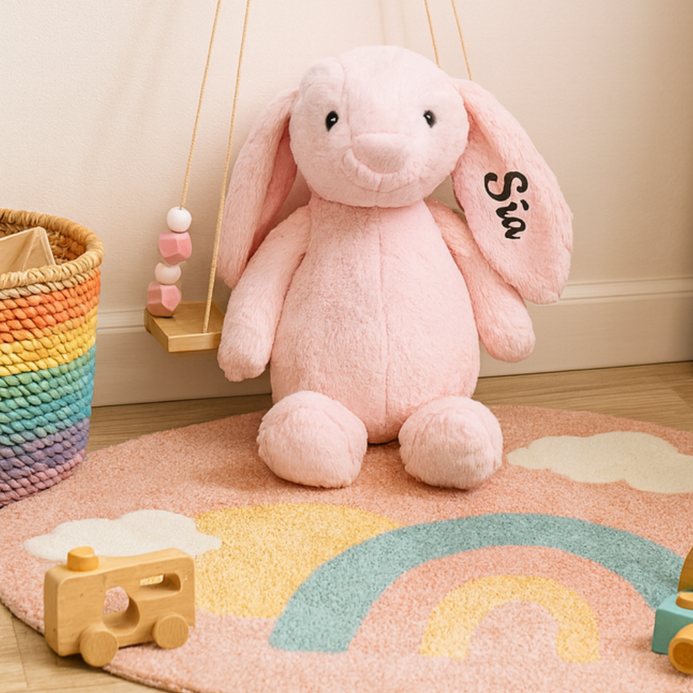 Made from premium plush fabric and stitched with care, it’s ideal for snuggles, nap time, and play. Whether gifted at a baby shower or added to a nursery collection, this bunny is sure to become a child’s first best friend.
