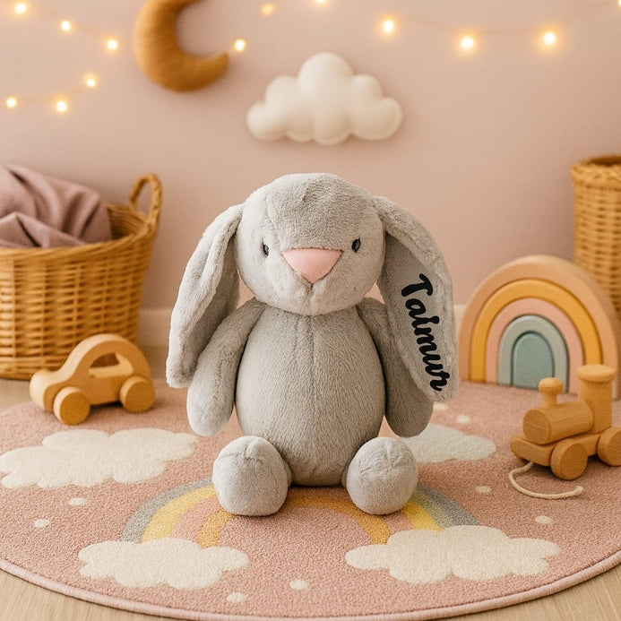 Made from premium plush fabric and stitched with care, it’s ideal for snuggles, nap time, and play. Whether gifted at a baby shower or added to a nursery collection, this bunny is sure to become a child’s first best friend.