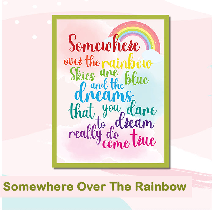 Our Somewhere Over The Rainbow Quote Frames for children are designed to spark imagination and inspire creativity in ways that delight every child, every day. They're available in a wide range of sizes and colors, so you can find the perfect fit for your little one.