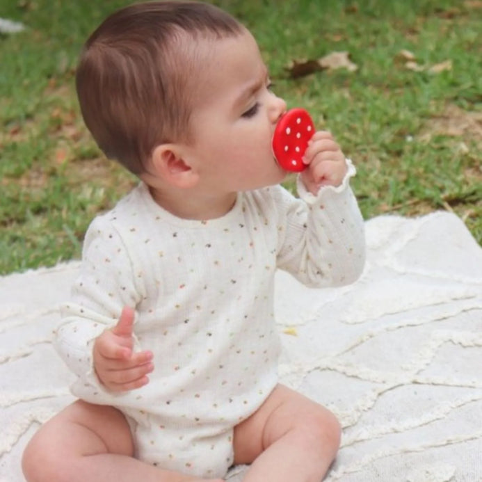 This fruit teether introduces kids into following healthy habits from a young age while relieving sore gums.