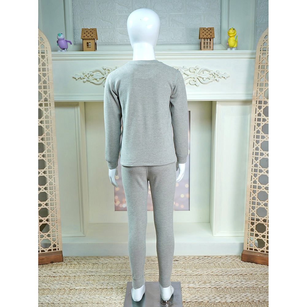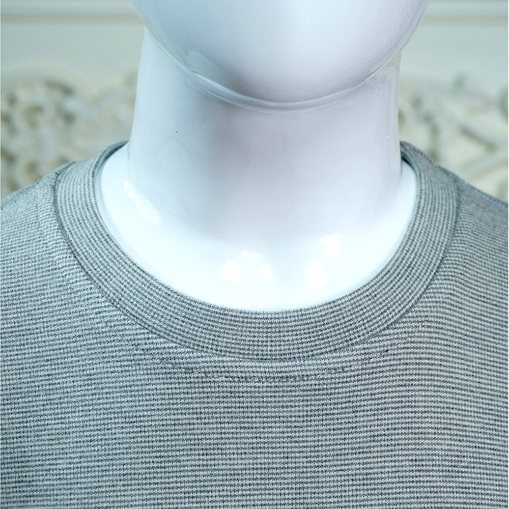 Stripes Grey Round Neck Upper & Lower Body Thermal Winter Warmers