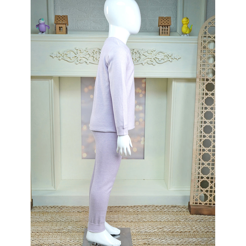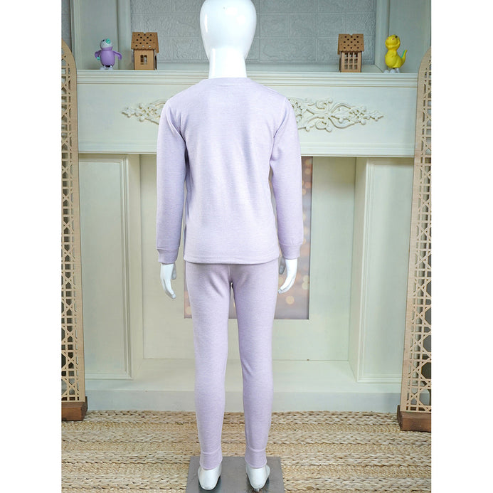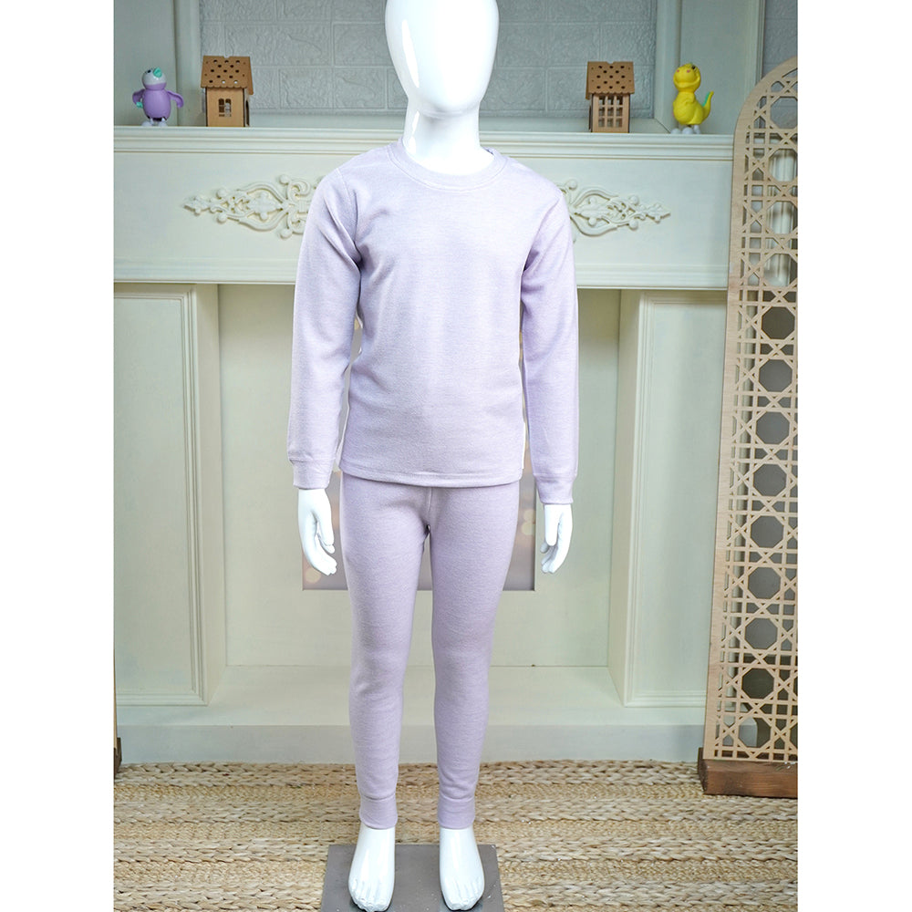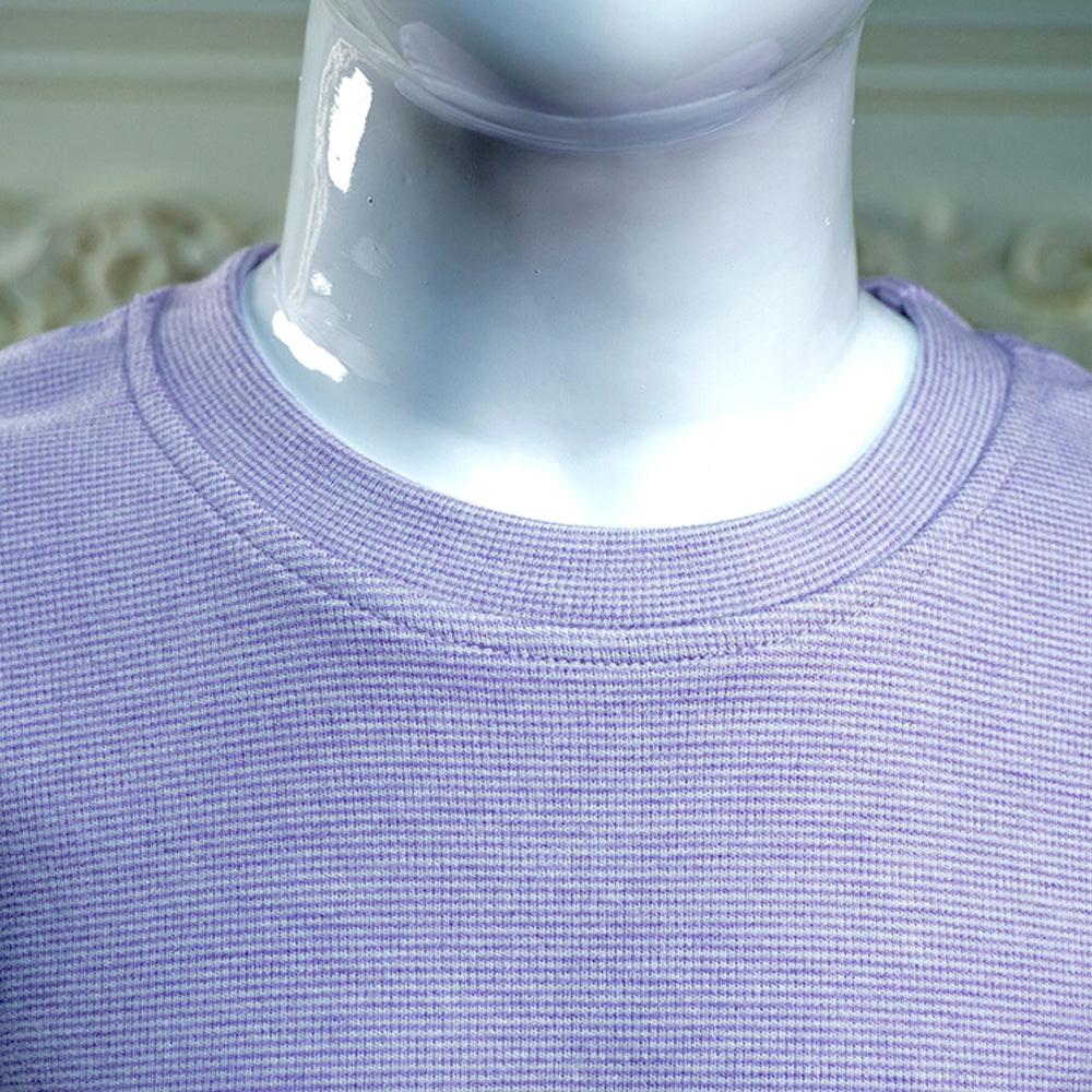 Stripes Purple Round Neck Upper & Lower Body Thermal Winter Warmers
