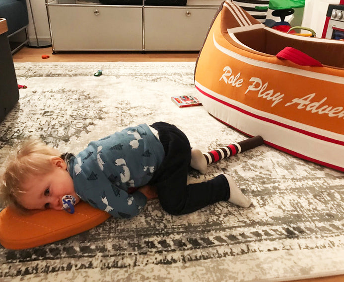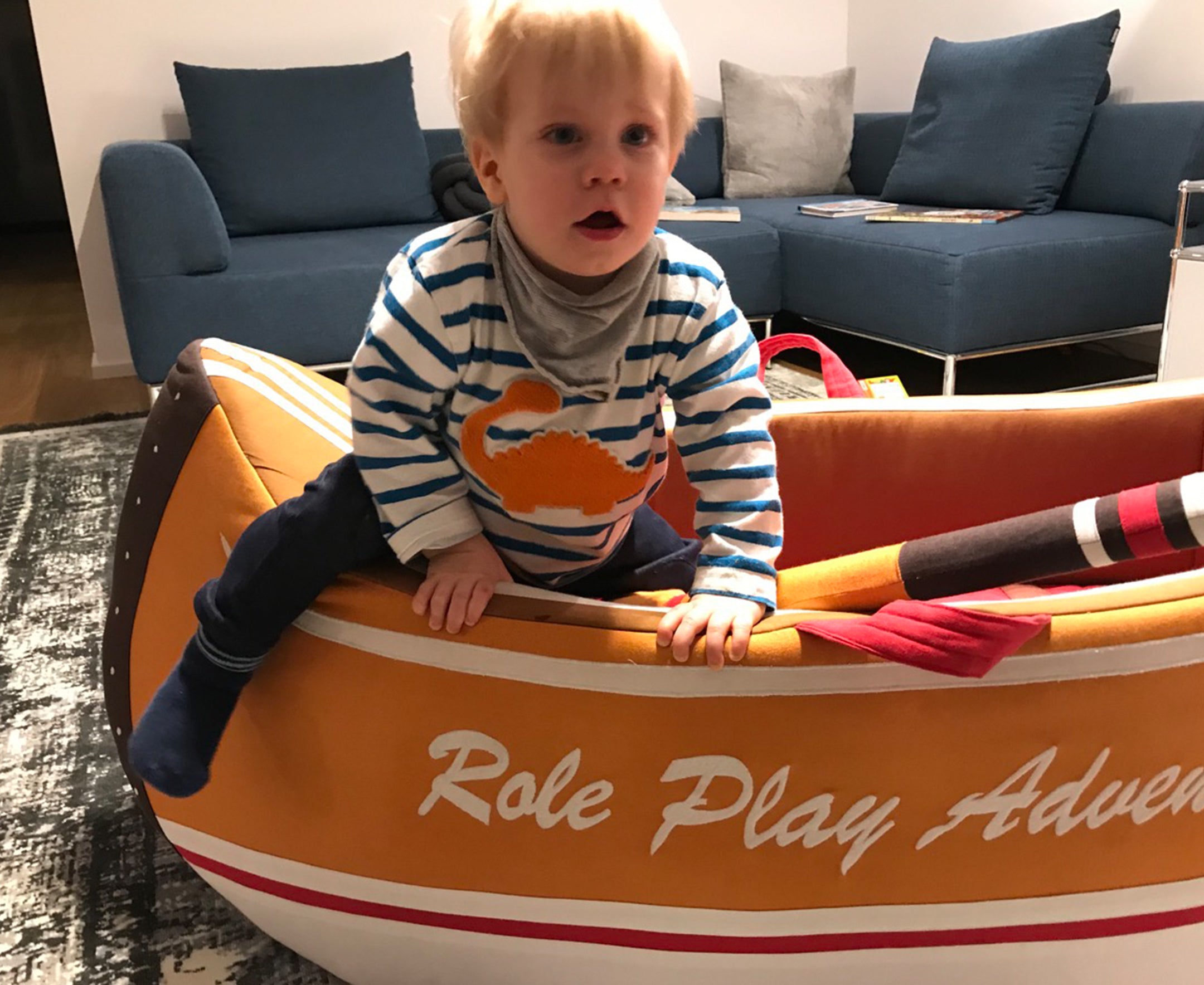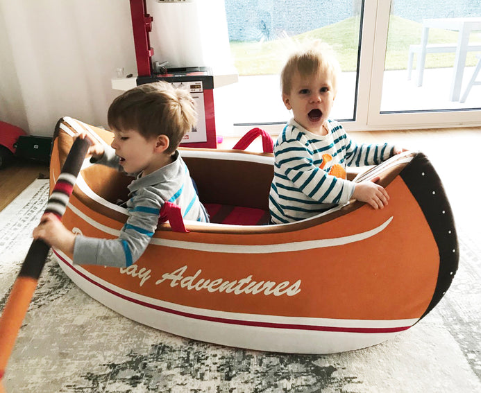 Does your little one love to explore? Embark on a camping adventure with our Little Woodland Canoe with included fabric oar. This extraordinary hand sewn piece will be the center of any playroom or bedroom. At almost 4.5 feet long and over 2 feet wide, It's a springboard for role play, as a reading spot or a cozy napping place. The superior construction is made of 100% cotton with lightweight rigid foam to provide structure so the shape holds well and doesn't sag. It is made with top quality materials & built to last even the roughest pioneers. Role Play™ brings 25 years of expertise in textiles to our boutique collection of inspired designs for children. Our avant-garde studio is brimming with a team of talented designers & tailoring specialists to create toys that spark the imagination of children of all ages. Enjoy your very own Role Play Woodland Canoe today.