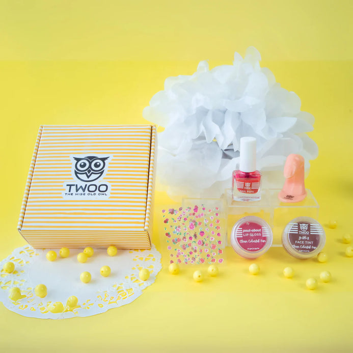 Pull off that no-makeup makeup look on your child with our cute surprise box! Start by applying the 3-in-1 face tint for a natural blush. Let them choose their favorite nail pop color and paint their nails. Swipe on some magic mirror pout-about lip gloss for a shiny smile and finish off with nails in a jiffy nail stickers.