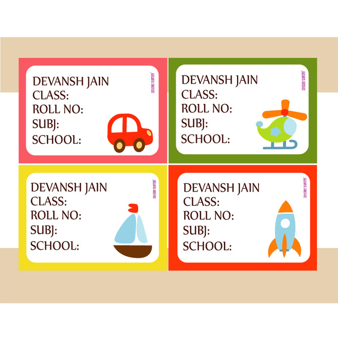 Kids school book labels pack available in a array of colours and styles, they'll stop the kiddos dueling over mixed up or misplaced books.