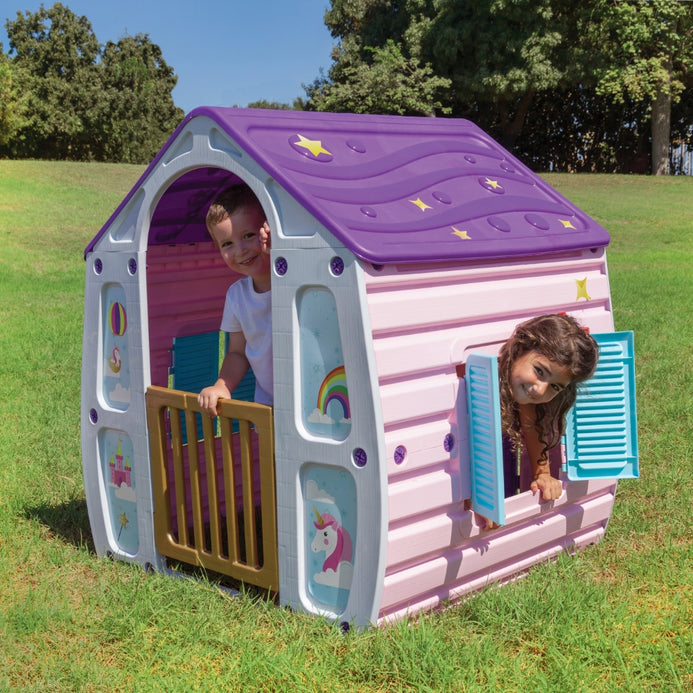 The Starplay Children's Magical Playhouse will provide your child with hours of imaginative fun. A place of their own for your kids to entertain their friends. Feels like a real home with door mail slot for kids to recieve notes from family and friends. Working door and shutters. Easy come and go. Easy assembly with no tools required. Light & easy to move. Quick clean up with a damp cloth.