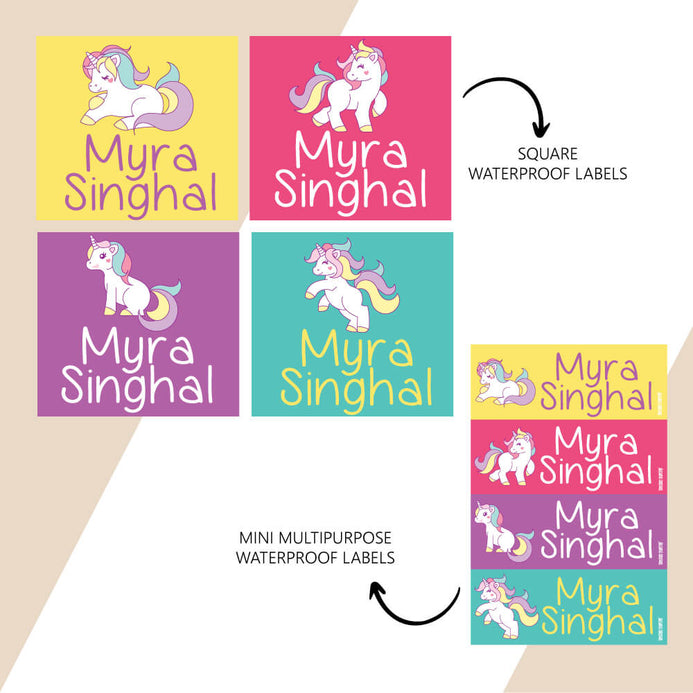 For all your labelling needs from bottles, tiffins to everything big and small we have you covered! The new combo set comes with two sticker sizes, that will have all your kids items labeled and ready for school! And the added bonus they are all WATERPROOF!