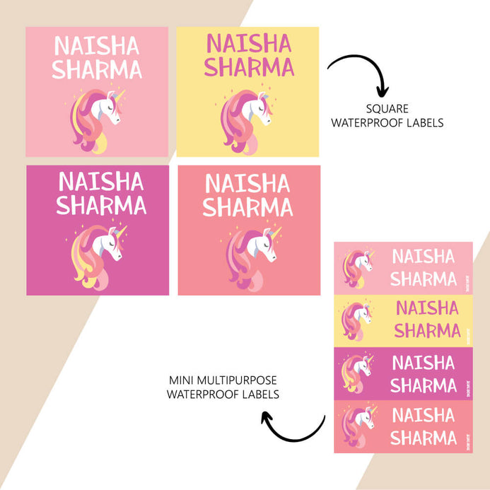 For all your labelling needs from bottles, tiffins to everything big and small we have you covered! The new combo set comes with two sticker sizes, that will have all your kids items labeled and ready for school! And the added bonus they are all WATERPROOF!