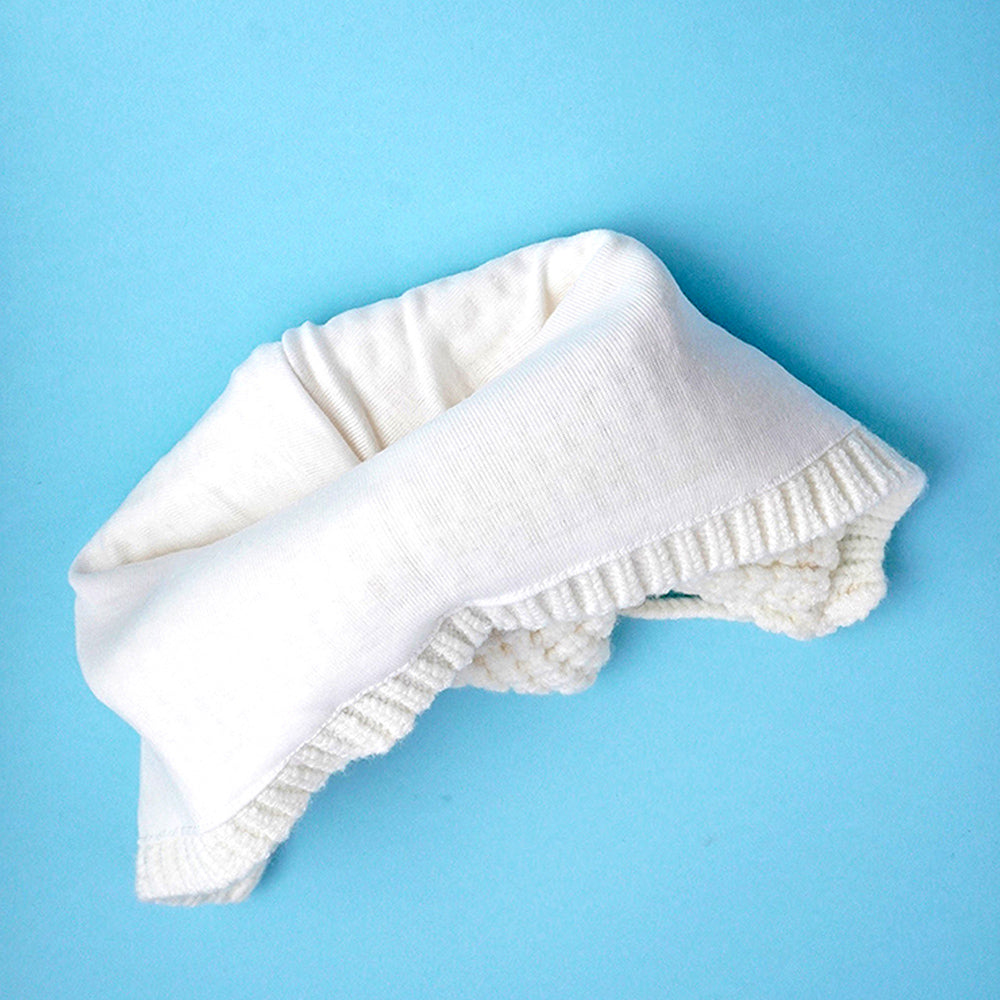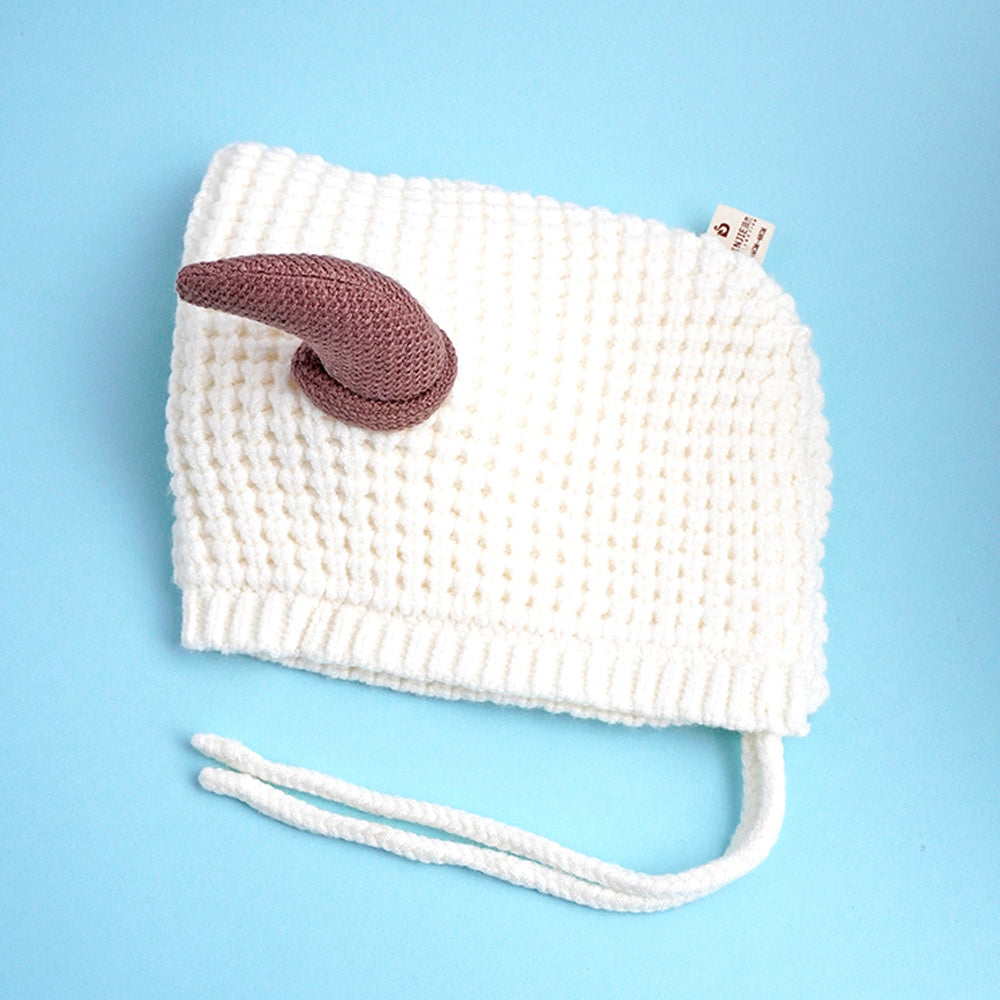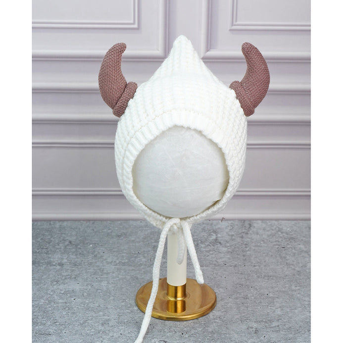 White Baby Horns Knitted Soft Woolen Winter Cap With Tie Up | 6-18 Months