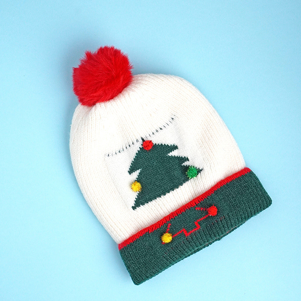 White Xmas Tree Christmas Themed Woolen Winter Cap Beanie | 3-10 Years