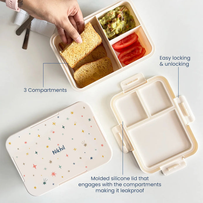 Make mealtime fun and hassle-free with our Personalized Lunch Box, made from high-quality, BPA-free plastic and designed with three built-in compartments for easy storage and organization of meals and snacks. Choose from 20+ unique designs and personalize it with a name on top, creating a one-of-a-kind rectangular bento lunch box that kids will love. Lightweight and durable, it’s perfect for school, classes, travel, or on-the-go snacking. It’s also a thoughtful addition to birthday return gift hampers and easy for little ones to carry. Customize your lunch box today and make every mealtime extra special! Do Not Microwave.