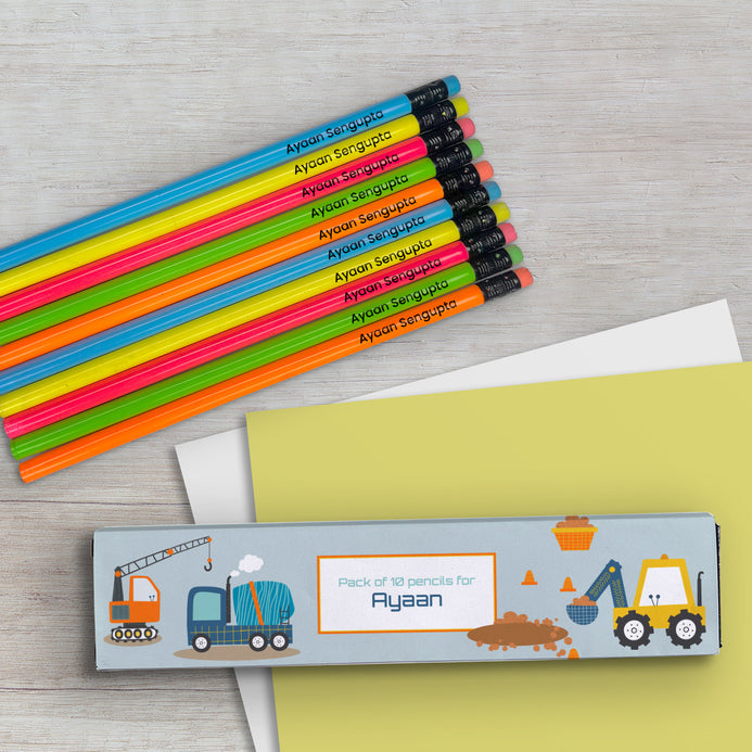 Upgrade your stationery collection with Personalized Pencils in a Custom Pencil Box, featuring high-quality Doms Neon Rubber-Tipped HB/2 Graphite Pencils designed for smooth, stress-free writing with an ergonomic grip and extra-dark lead for precision. Customize the pencil box with stylish designs and add any name or text to the pencils for a unique touch, making this set perfect for kids, teachers, professionals, and anyone looking to organize their stationery in style. Ideal for school, office, or gifting, these personalized pencils are a thoughtful addition to kids' birthday return gift hampers, promotional events, or as a stylish and practical gift for any occasion. Note: Pencil box customization excludes the sharper and eraser sleeve.