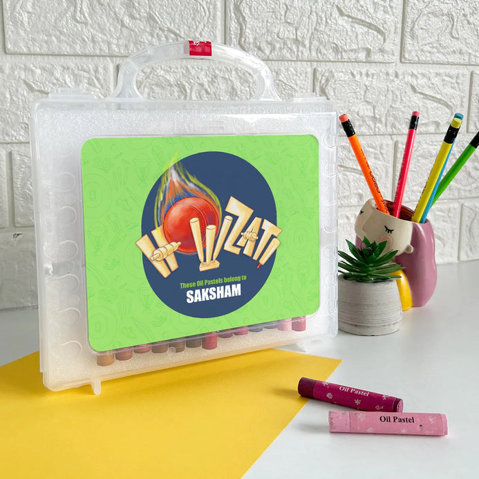 Make art time extra special with our Personalized Crayon Box, featuring a customized cover with design and name. Enjoy premium quality Faber-Castell Oil Pastels set of 50. Choose from a range of specially created designs like cricket, football, floral, unicorn, jersey number and more to customize the box. Add a personal touch with your kids name, making it perfect for sparking creativity while keeping art supplies organized in style. Ideal as a thoughtful gift for kids, birthdays, Children’s Day, back-to-school supplies, personalized return gifts, and more, this crayon box combines premium quality with a personalized flair to inspire creativity and delight every young artist. Tip: Pair it with our Custom Pencils box for the perfect Return Gift Combo!