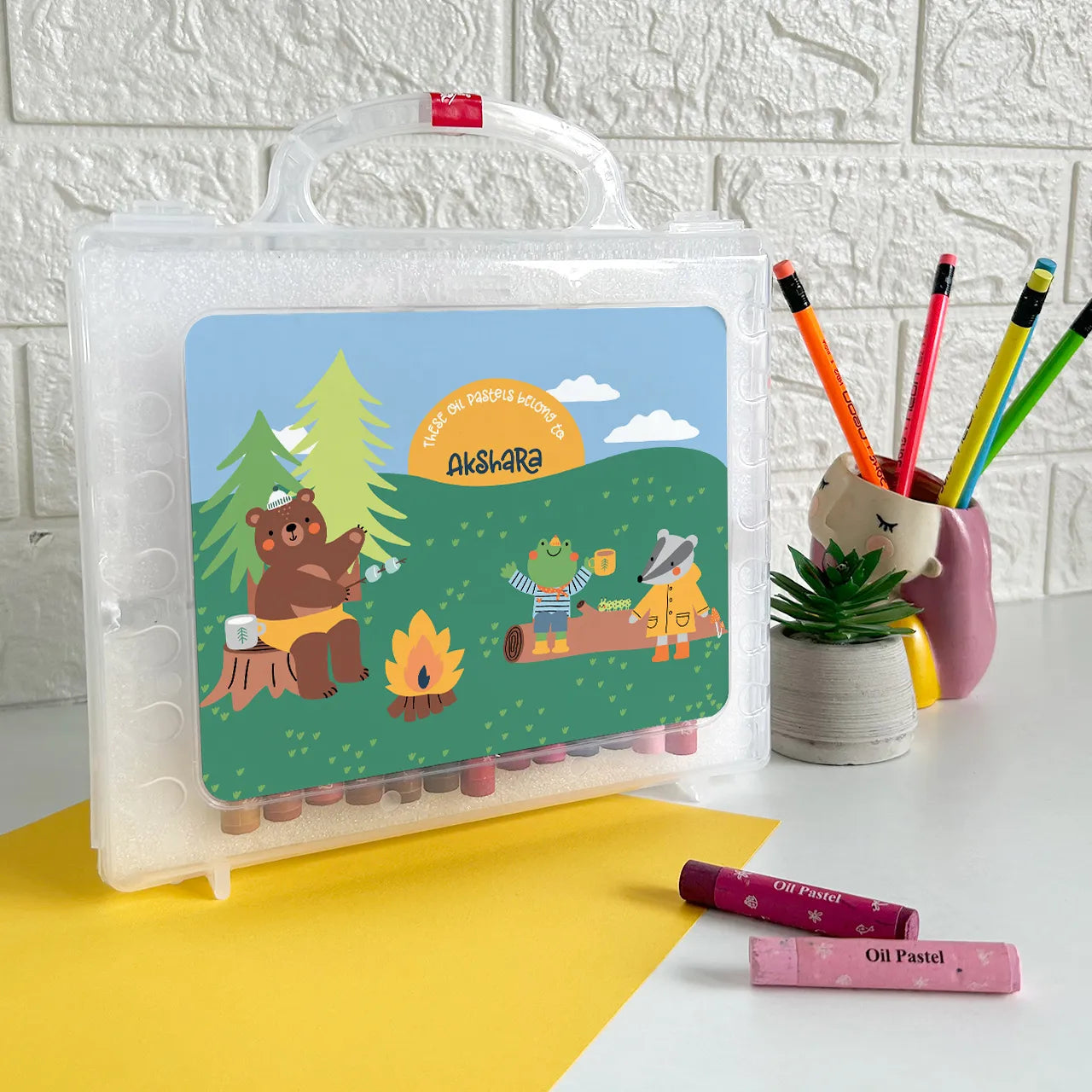 Make art time extra special with our Personalized Crayon Box, featuring a customized cover with design and name. Enjoy premium quality Faber-Castell Oil Pastels set of 50. Choose from a range of specially created designs like cricket, football, floral, unicorn, jersey number and more to customize the box. Add a personal touch with your kids name, making it perfect for sparking creativity while keeping art supplies organized in style. Ideal as a thoughtful gift for kids, birthdays, Children’s Day, back-to-school supplies, personalized return gifts, and more, this crayon box combines premium quality with a personalized flair to inspire creativity and delight every young artist. Tip: Pair it with our Custom Pencils box for the perfect Return Gift Combo!