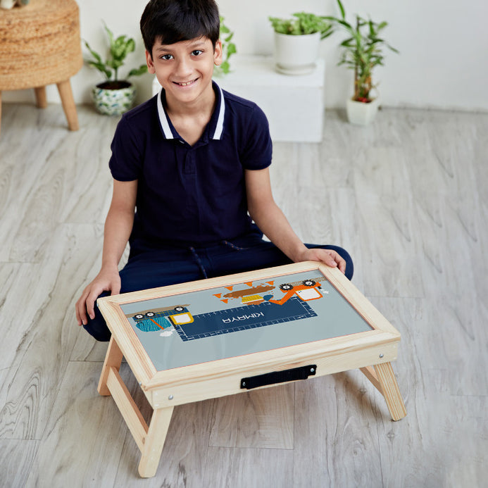 Make everyday life easy and convenient with this kids’ folding desk online at Zoomin. This personalized Foldable Desk is a must-have for every home! Kids, as well as adults, will feel 100% safe while making use of this desk with personal items like a laptop, iPad, tablet, books, drawing canvas, snacks, food, and more on the tray. This customized folding desk is portable and can be moved about your home for your comfort and convenience. You can easily adjust the angle of the desk to suit your comfort by simply lifting up the lid until you feel it’s perfect. Customize this sturdy Foldable Desk with cute designs & personalize it with your kid’s name to make it even more special for them.