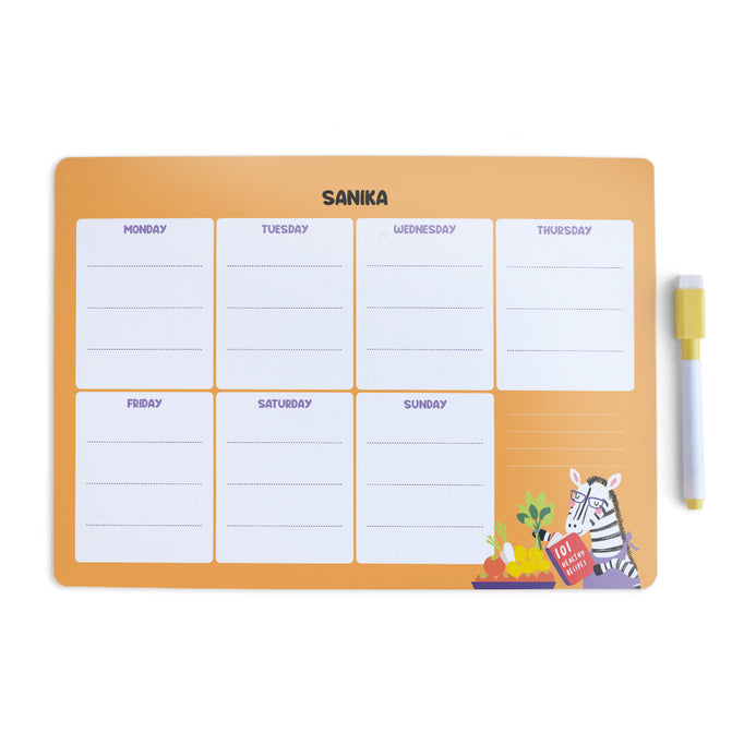 No more struggling with meal plans & fussy eaters. Create excitement in your kids by personalizing a meal planner for them! Involve them in the process with ease & create balanced weekly meals with this cutely designed personalized Meal Planner. P.S: Special Magnetic Marker included for FREE!