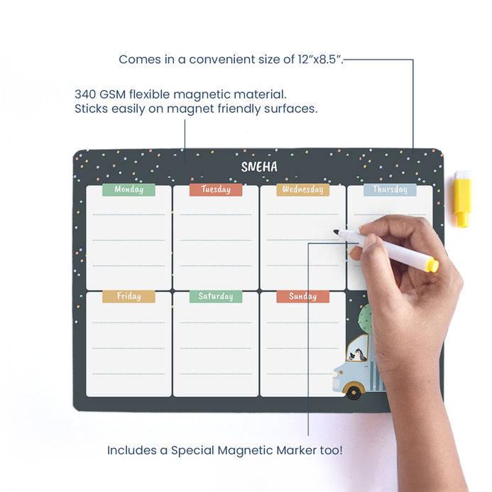 No more struggling with meal plans & fussy eaters. Create excitement in your kids by personalizing a meal planner for them! Involve them in the process with ease & create balanced weekly meals with this cutely designed personalized Meal Planner. P.S: Special Magnetic Marker included for FREE!