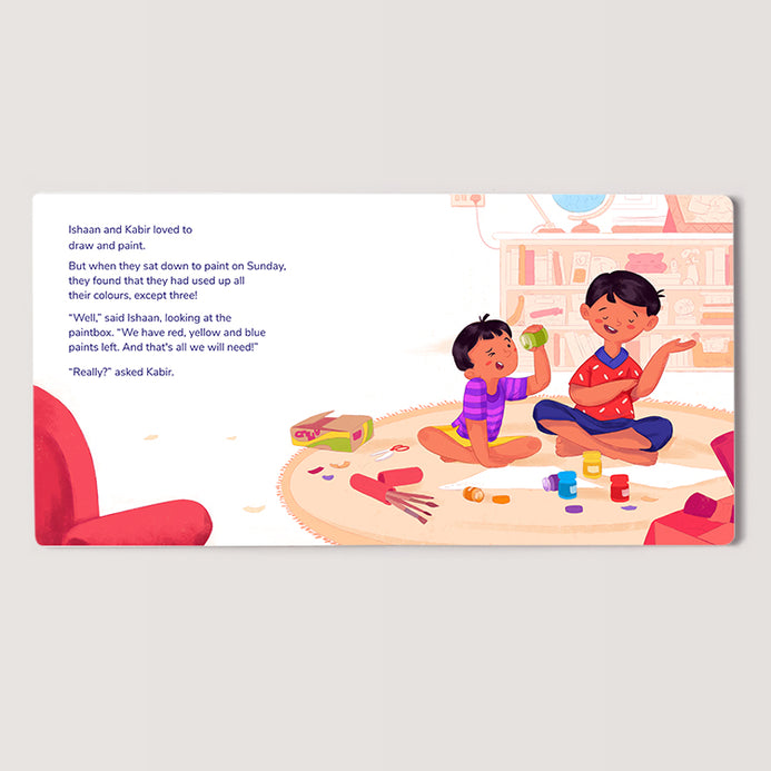 A fun game of ‘I spy’ leads two siblings/friends to discover primary and secondary colours & the excitement of creating unique colours on their own! A must-buy for all 4-6 year olds!