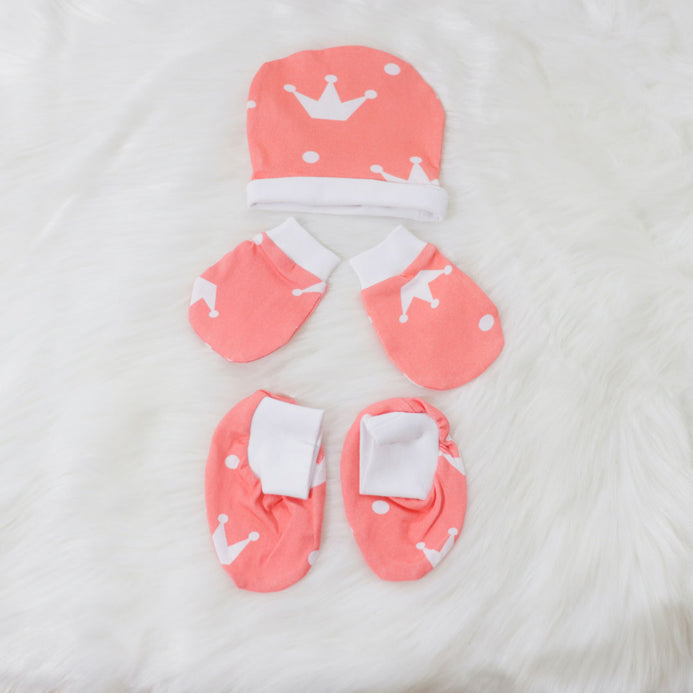 • Set of 5 - 1 cotton cap, 1 pair of mittens, 1 pair of booties.